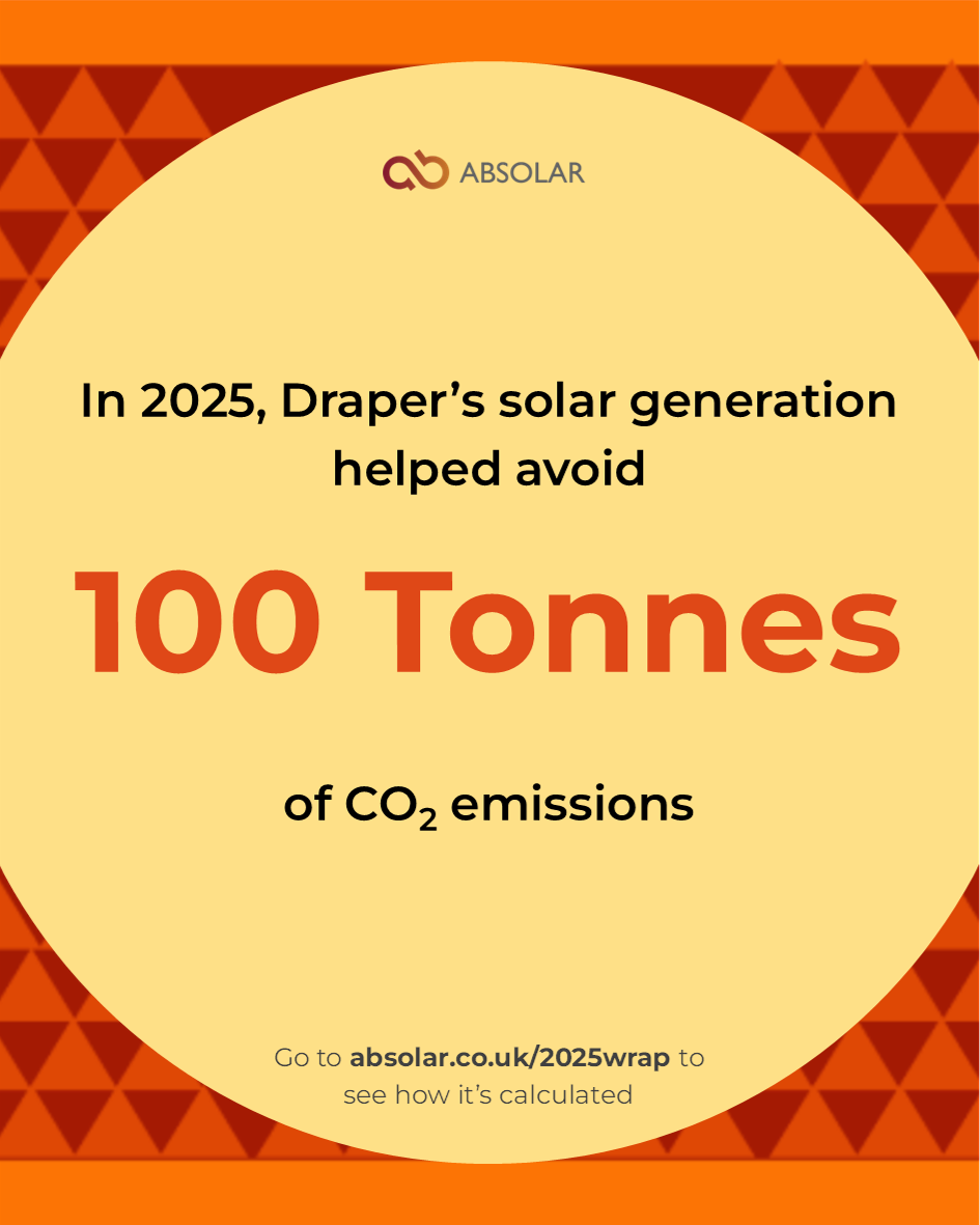 The Draper team is keen to encourage other organisations to embrace solar power too. If you'd like to quickly and easily find out your building’s solar potential for free - try out the free online solar survey tool from Absolar at: https://find.absolar.co.uk/form?utm_source=2025wrap